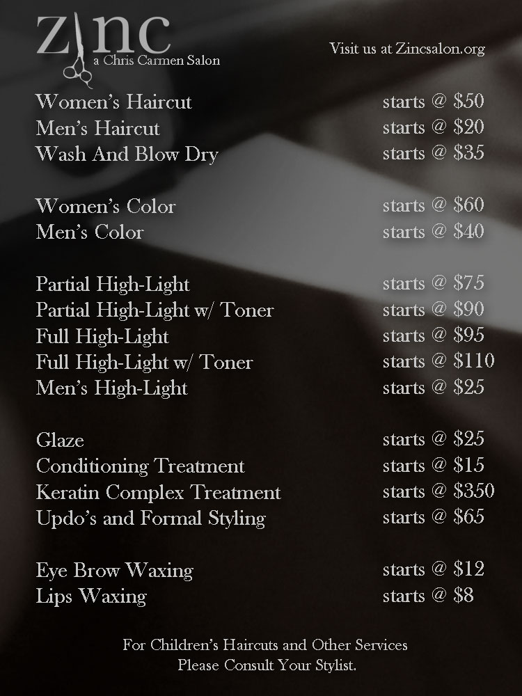 * Additional costs may be charged as determined by factors such as hair length, creative process, time, and stylist’s level of experience